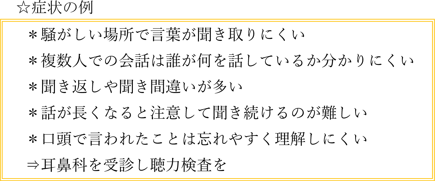 *音を聞く「ヒアリング」はできるため、一般的な聴力検査では正常とされます。