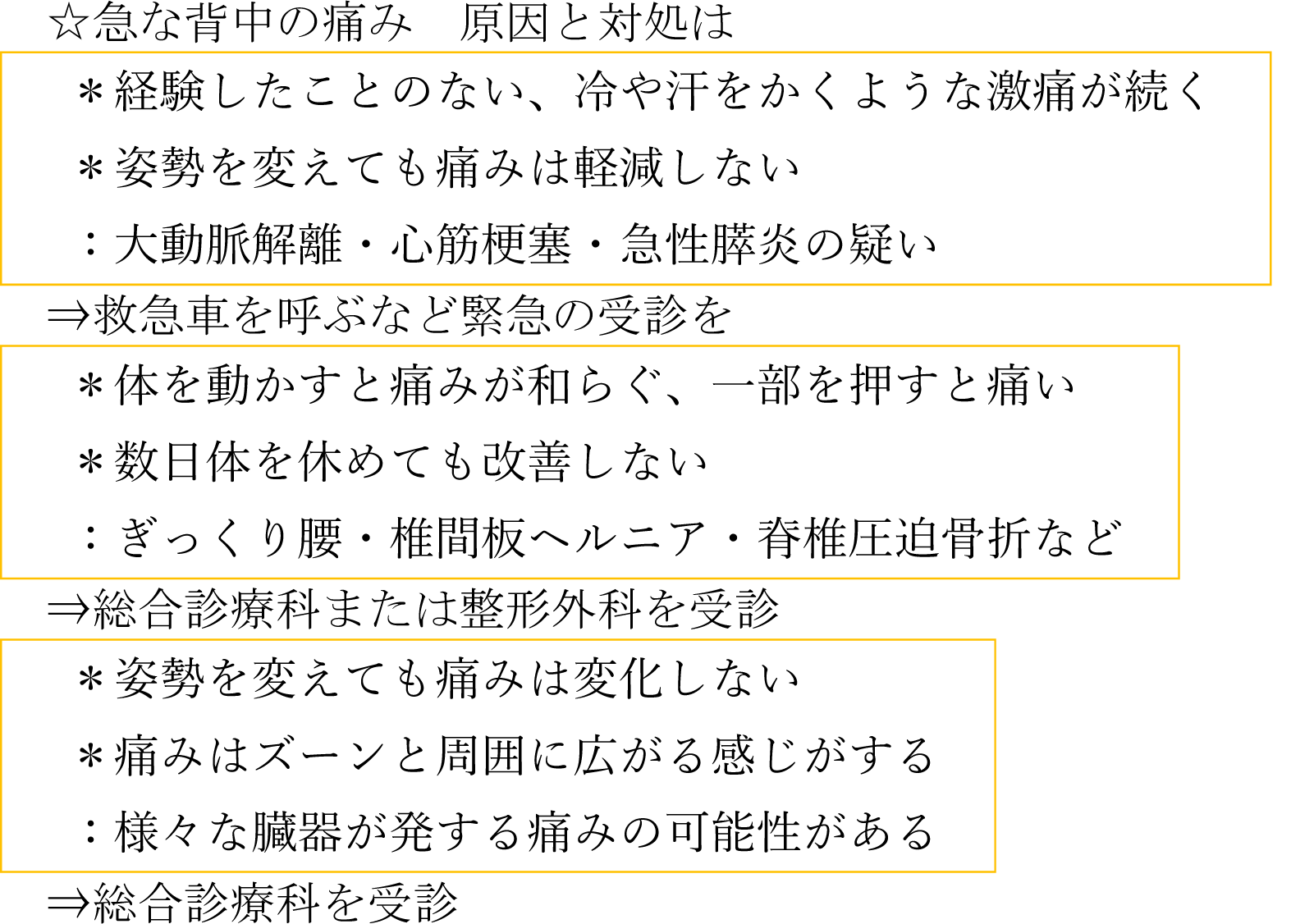 *命に関わることがあるのは「心筋梗塞」「腹部大動脈解離」「急性膵炎」の痛み。