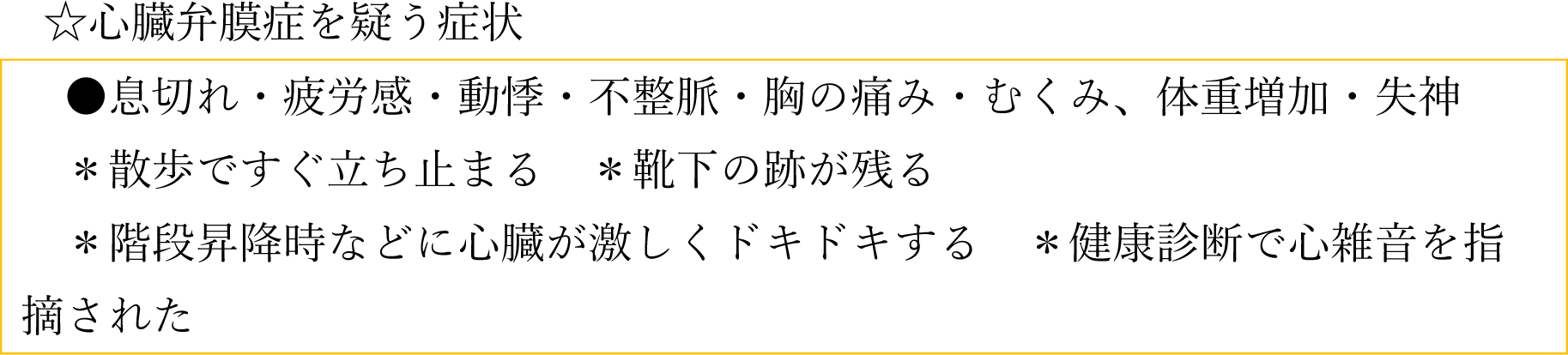 *心臓弁膜症が怖いのは、病気が進行するまで症状があまりでないこと。